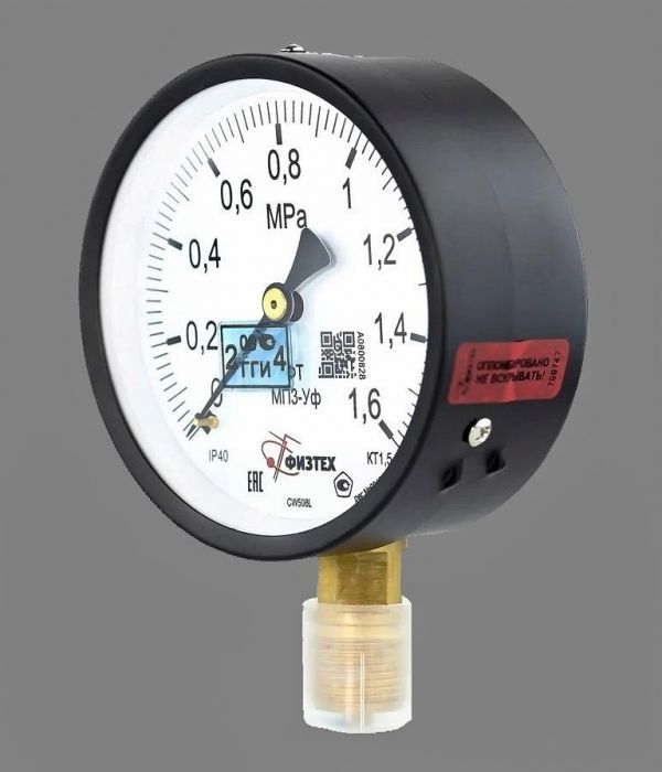 Манометр МП3-Уф 0-1,6 МПа кт.1,5 d.100 IP40 M20*1,5 РШ - это радиальный манометр в корпусе диаметром 100 миллиметров для измерения давления воды или газов в границах от 0 до 1,6 MPa.