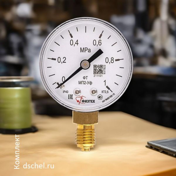 - Манометр МП2-Уф 0-1 МПа кт.2,5 d.63 IP40 M12*1,5 РШ с поверкой - 1 шт;