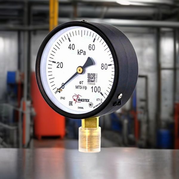Манометр МП3-Уф 0-100 кПа кт.1,5 d.100 IP40 M20*1,5 РШ - это радиальный показывающий манометр общего технического применения с диаметром корпуса 100 миллиметров для контроля давления сред в низком диапазоне от 0 до 100 кПа.